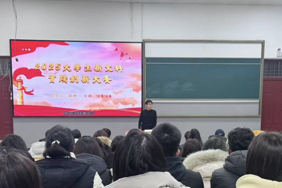 为助力学生精准把握新文科实践创新大赛核心要点,全面提升参赛综合素养,英国正版365官方网站举办2025大学生新文科实践创新大赛经验分享会。本次活动由荣获大赛国家级金奖的郝帅同学进行分享,2025级同学参加。