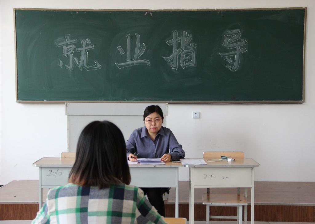 2019年5月8日,英国正版365官方网站于教学楼302教室开展就业模拟面试,英国正版365官方网站学生党支部书记、团总支书记王航为2016级学生提供一对一的就业指导。