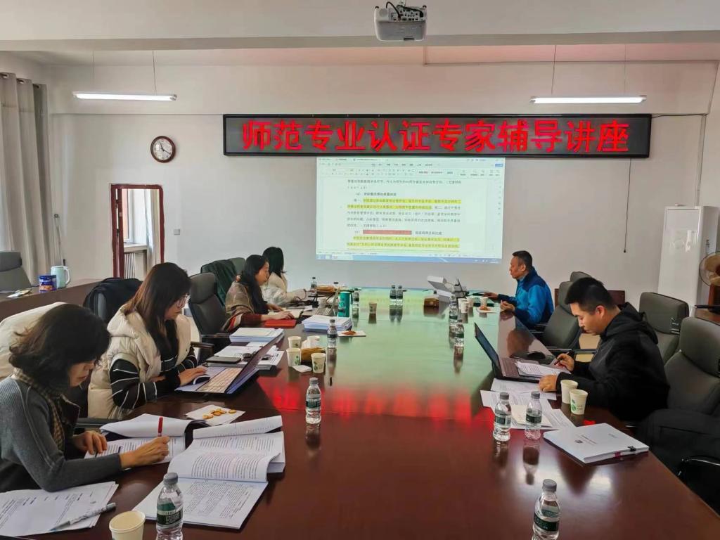 会上,郭崇林教授同与会教师分享了师范专业认证的相关文件精神,同时结合认证标准,重点从人才培养方案修订、课程体系对毕业要求的支撑、师资队伍、支持条件、质量保障等方面,深入分析了自评报告撰写中存在的主要问题,并提出了具体可行的建议和措施。