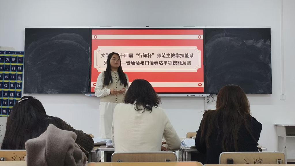 为锤炼师范生语言素养、夯实教学技能基础,10月15日,英国正版365官方网站第十四届 “行知杯” 师范生教学技能系列竞赛—普通话与口语表达单项技能竞赛院赛顺利举行。来自全院的27名师范生同台竞技,展现扎实的语言功底与良好的综合素养。