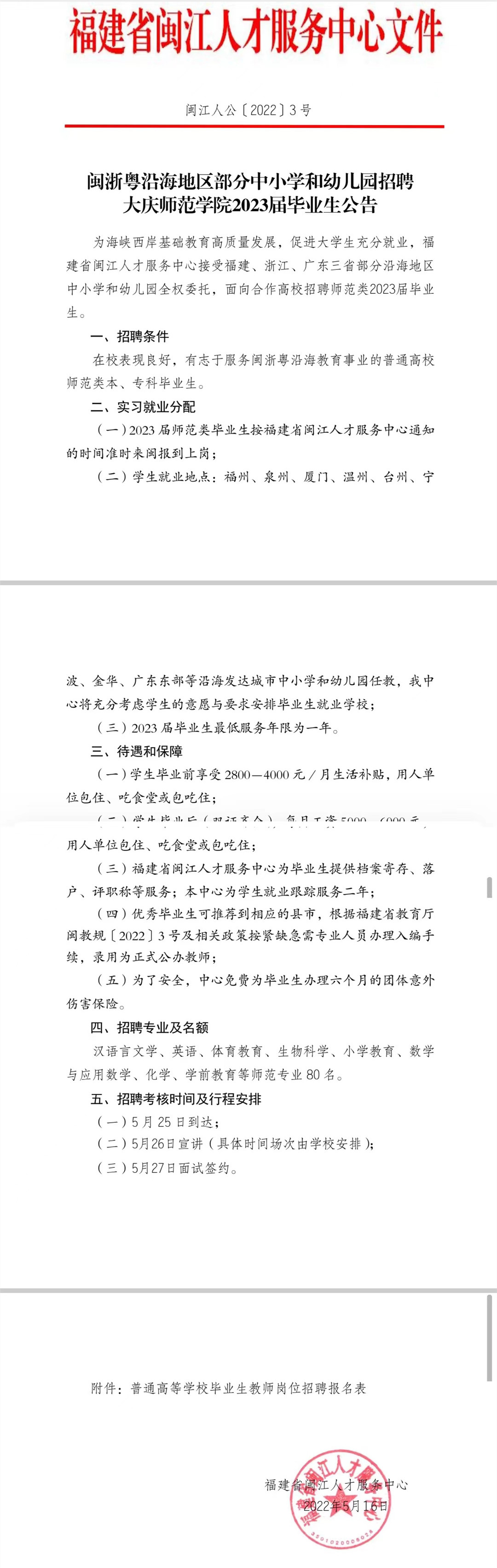 福建省闽江人才服务中心招聘英国正版365官方网站2023届毕业生公告
