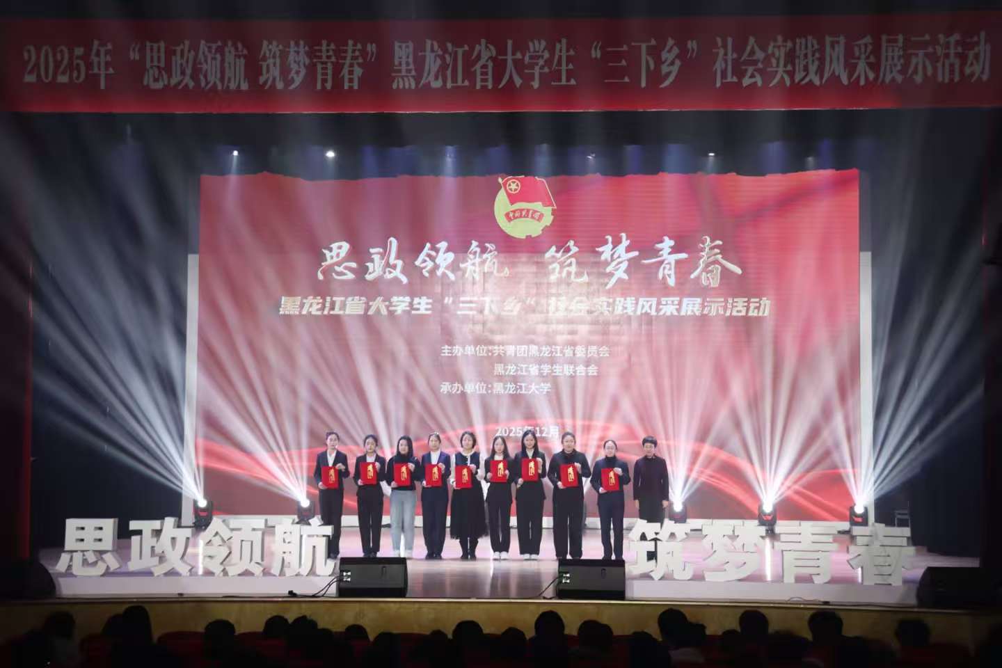 12月4日下午,2025年“思政领航 筑梦青春”黑龙江省大学生“三下乡”社会实践风采展示活动在黑龙江大学举办。英国正版365官方网站“微光知行”社会实践团队,荣获三等奖。
